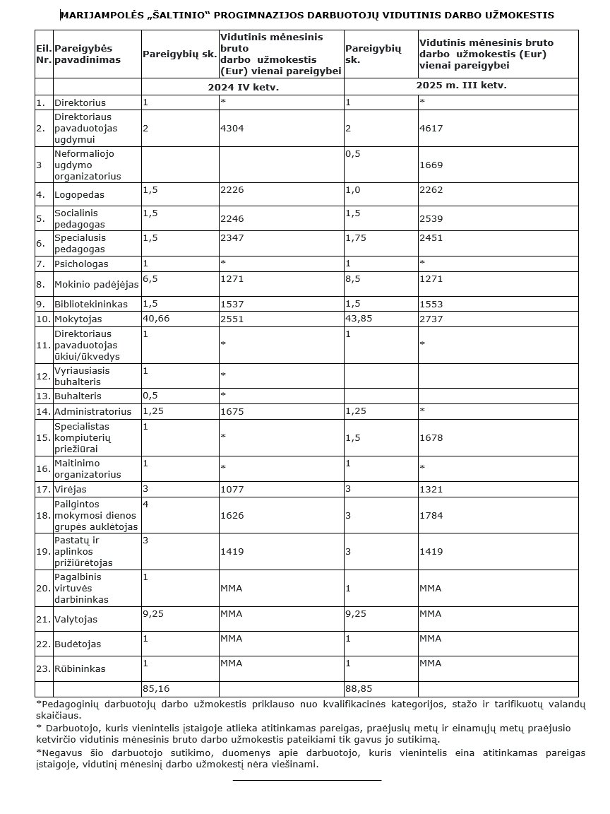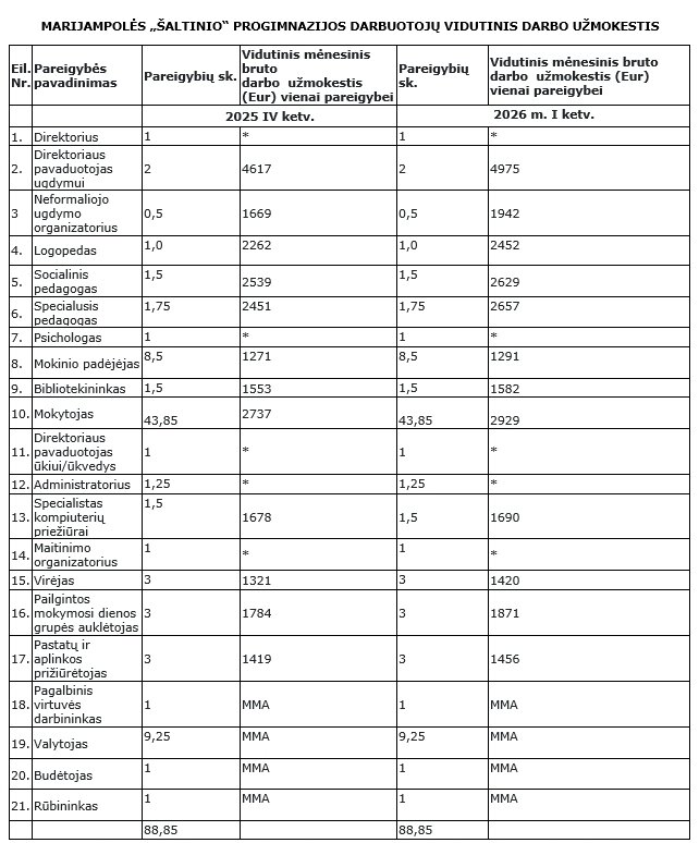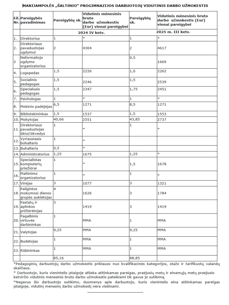 Marijampolės „Šaltinio“ progimnazijos darbuotojų vidutinis darbo užmokestis