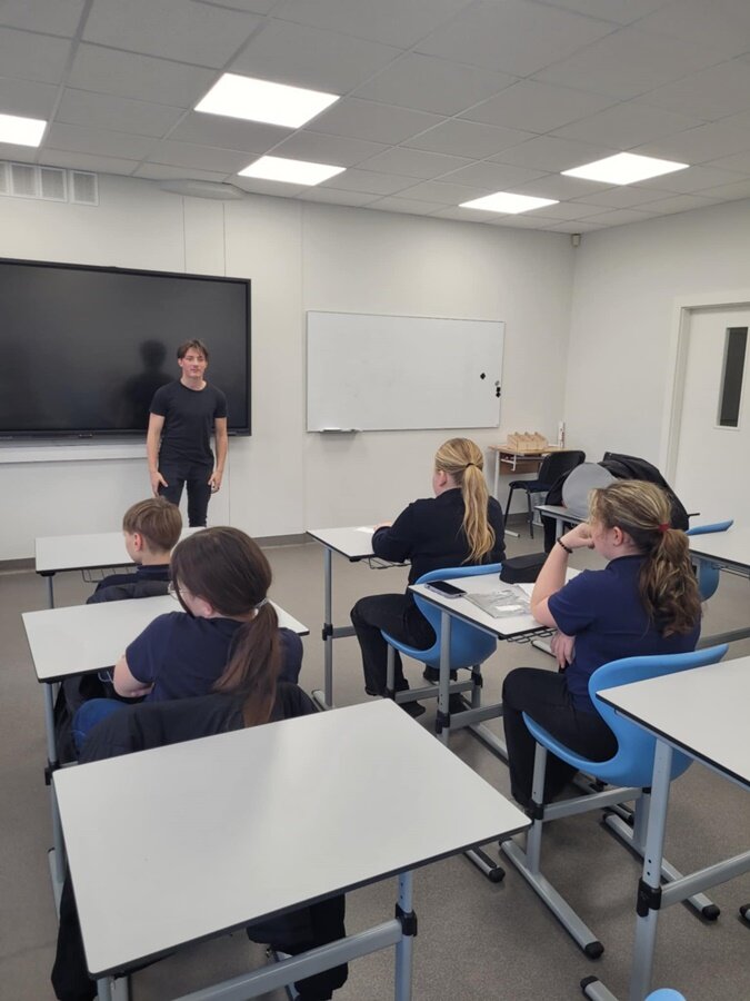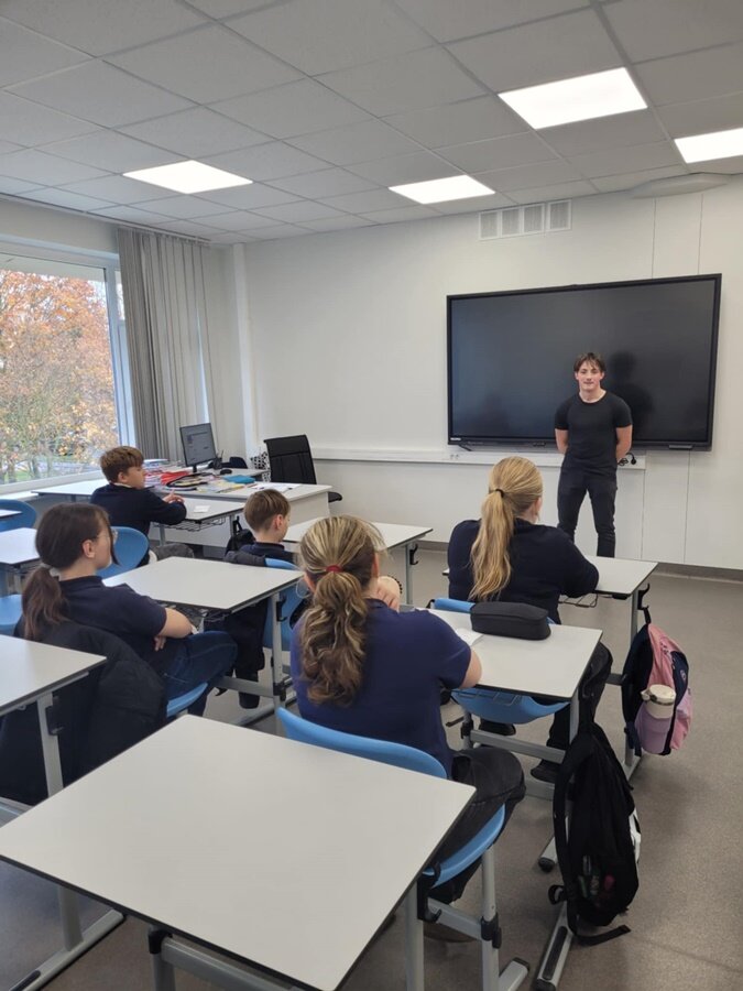 Spalio 24 dieną finansinio raštingumo pamokoje sulaukėme netikėto svečio - buvusio mūsų mokyklos mokinio Minvydo Kapočiaus. Dabar jis Rygiškių Jono gimnazijos dešimtokas.