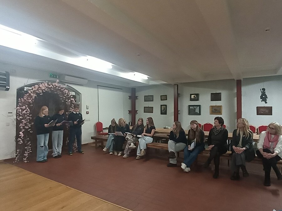 Po pažintinės dalies mokiniai pristatė savo kūrybos darbus – rašinius, eilėraščius, prozos kūrinėlius. Renginyje netrūko kūrybingumo, jaudulio ir įkvėpimo – jaunieji kūrėjai džiaugėsi galėdami pasidalinti savo mintimis ir talentu su bendraminčiais. Dvaro ledainėje skambėjo muzika, jautrūs žodžiai ir nuoširdūs pasakojimai. Renginio metu tvyrojo ypatinga nuotaika – tarsi praeitis ir dabartis susijungtų viename kūrybos akimirksnyje.