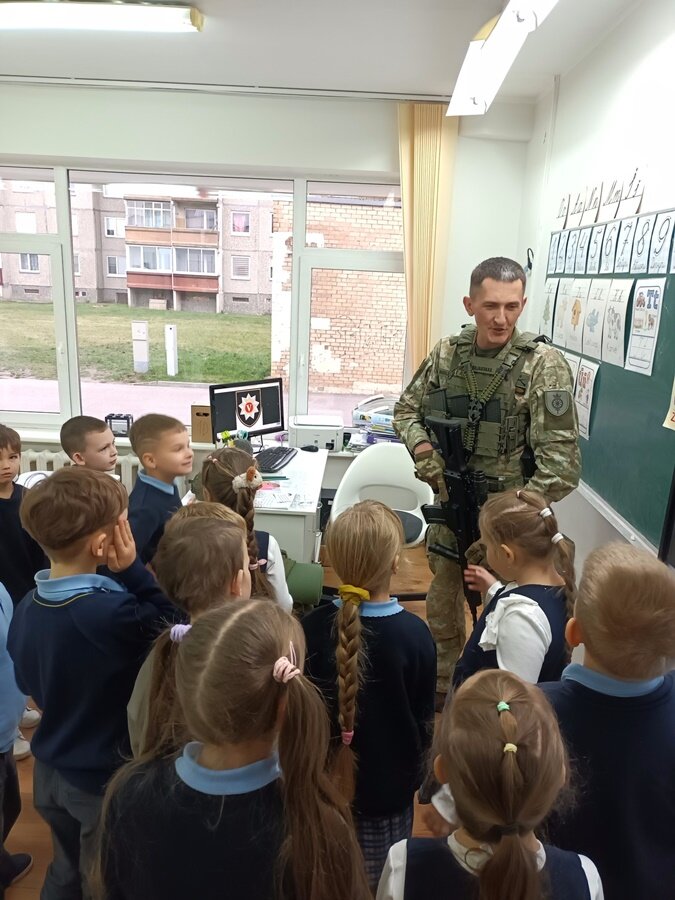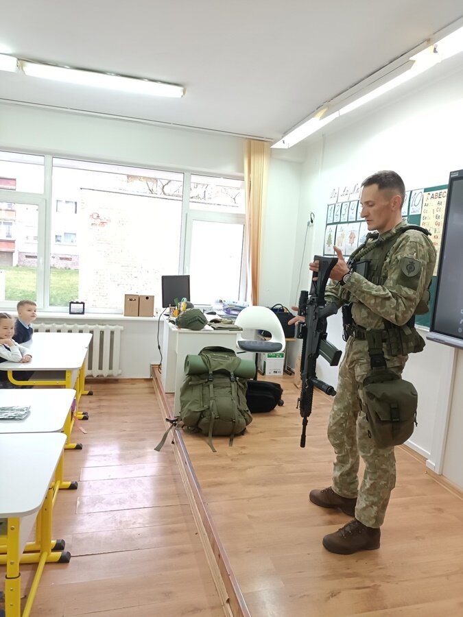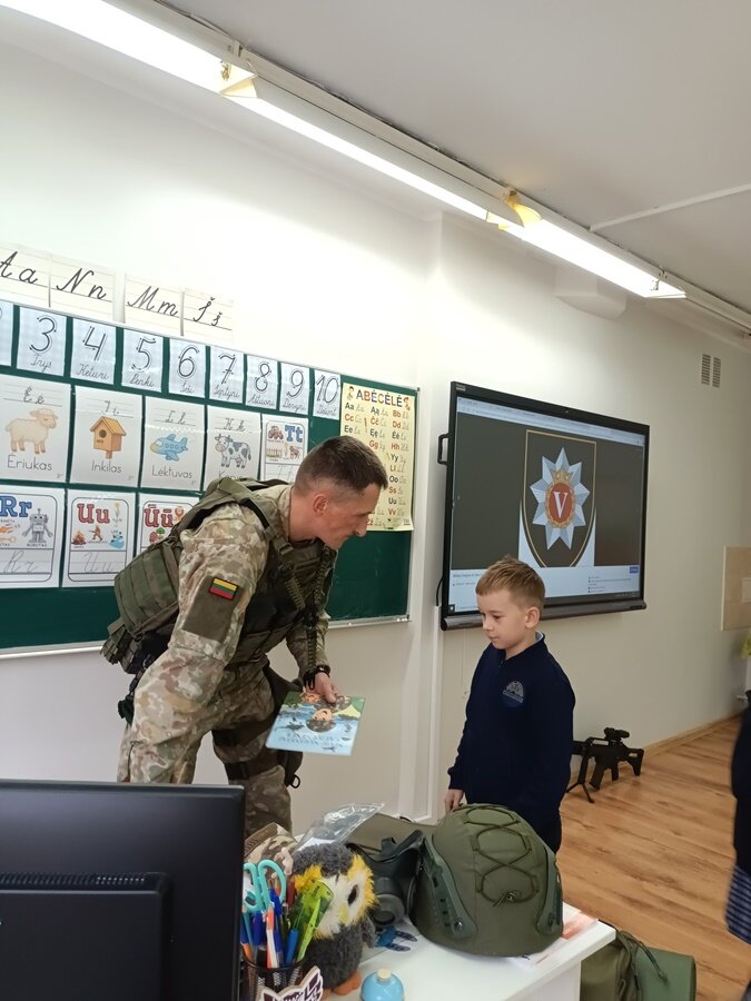 Artėjančios Lietuvos kariuomenės dienos proga, 1 D klasės mokiniai susitiko su Lietuvos karininku ir daugiau sužinojo apie jo profesiją. Vaikai galėjo apžiūrėti kario uniformą, ginklus, kuprinę bei jos turinį, viską paliesti ir išbandyti.