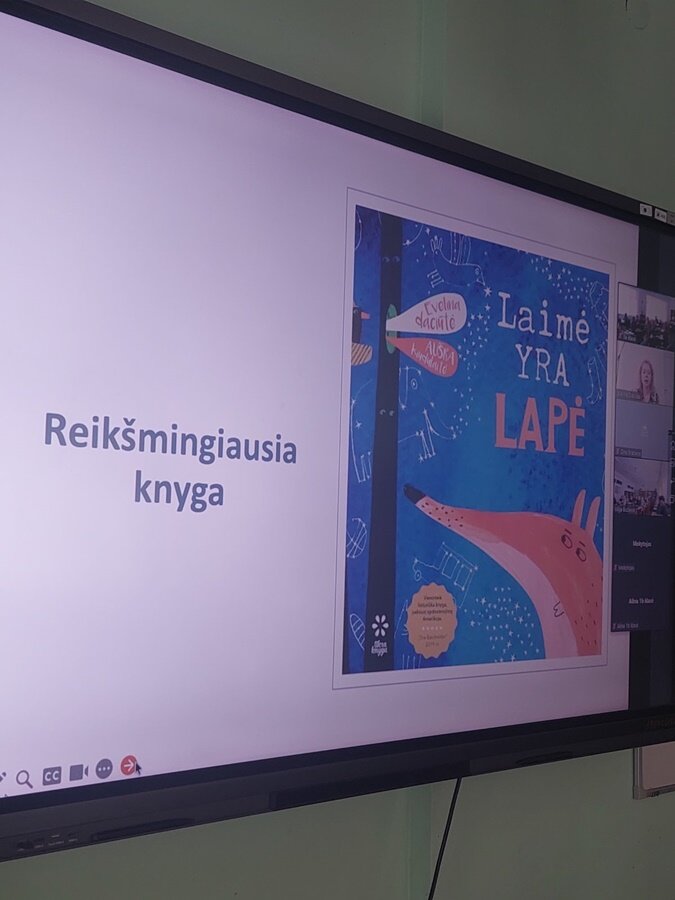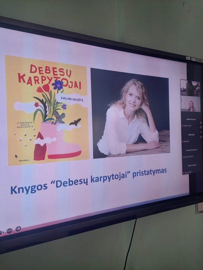 Sausio 15 dieną mokykloje vyko virtualus susitikimas su rašytoja Evelina Daciūte, kuriame dalyvavo 1a ir 2 b klasių mokiniai. Susitikimo metu rašytoja pristatė savo sukurtas knygas – „Debesų karpytojai“, „Lapė yra laimė“ ir kitas. Mokiniai turėjo galimybę susipažinti su kūrybos pasauliu, išgirsti įdomių pasakojimų apie knygų atsiradimą bei pabendrauti su autore. Virtualus susitikimas buvo prasmingas ir suteikė daug gerų emocijų.