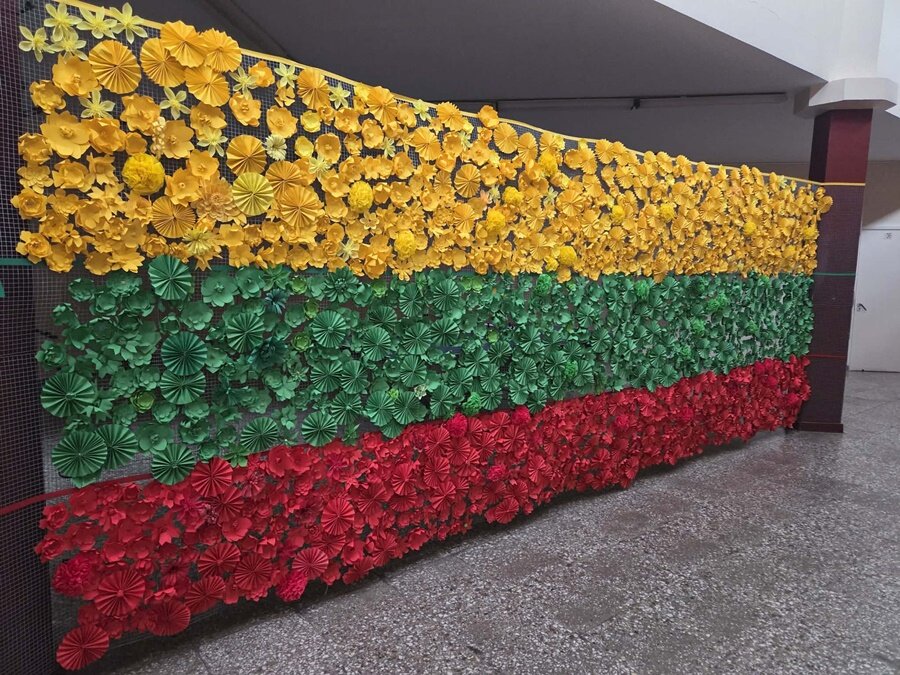 Vasario 16-osios proga visa progimnazijos bendruomenė susivienijo bendram tikslui – mokiniai gamino gėles rekordinei vėliavai. Turime savo rekordą – 2400 gėlių, kurį įsipareigojame gerinti!