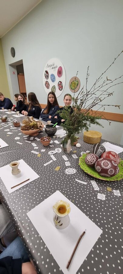Šiandien progimnazijos 8c klasės mokiniai dalyvavo edukacijoje „Margučio magija (marginimas vašku)“