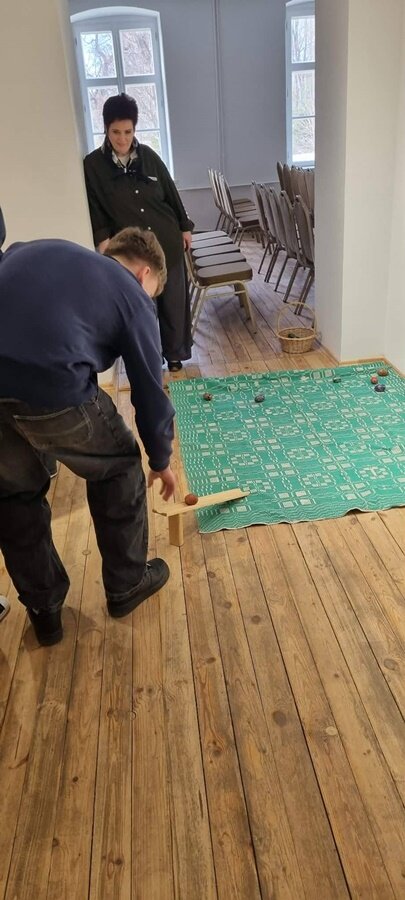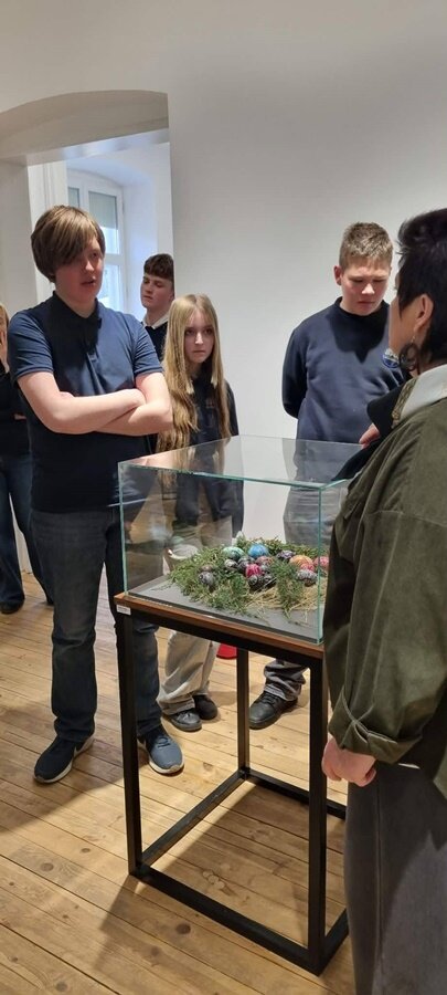 Belaukdami, kol margučiai nusidažys, apžiūrėjome muziejuje saugomus senuosius margučius, o veiklas vainikavo smagus margučių ridenimas