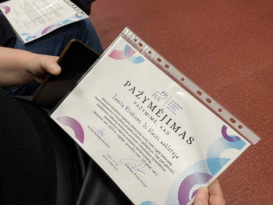 „Šaltinio” progimnazijoje baigėsi viena iš TŪM II projekto veiklų – „Kūrybinio mąstymo dirbtuvės“ mokyklos bendruomenei. Daug įdomių, prasmingų akimirkų, gražių bendrystės ir susitelkto darbo valandų. Ačiū visai darbingai nusiteikusiai komandai: mokytojams, mokiniams, tėvams. Dėkojame už projekto veiklų – „Kūrybinio mąstymo dirbtuvės“ užsiėmimų organizavimą Visuomenės ir verslo plėtros institutas ekspertams Aistei Rutkauskienei ir Vladui Polevičiui. Linkime didžiausios sėkmės! Laukiame naujų susitikimų, nes sukurtas „Patirčių bankas” neleidžia nuleisti rankas, o tobulėti kartu su Aiste ir Vladu. Ačiū už įvykdytą projektą.