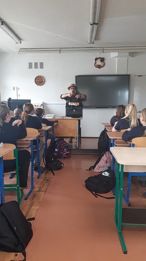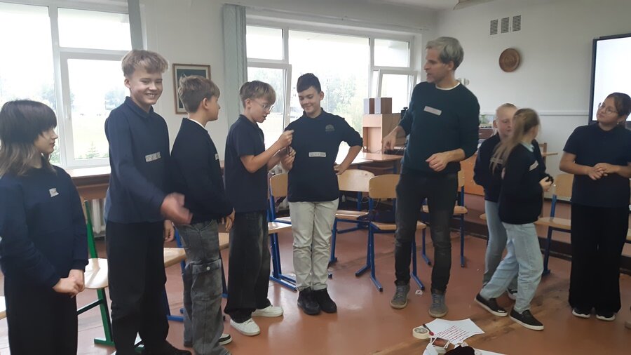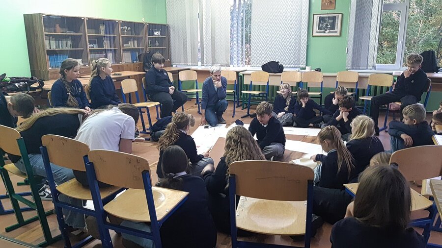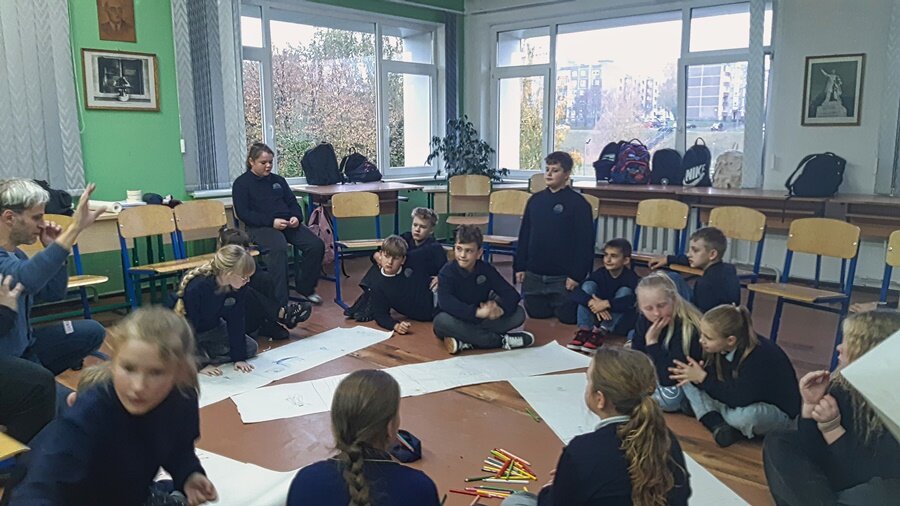 Spalio ir lapkričio mėnesiai 5c klasei padovanojo išskirtinę patirtį – literatūros pamokose per pasakų pasaulį keliavome kartu su svečiais: MB „Mokomanija“ vadovu Andriumi Guginiu, afrikietiškų būgnų studijos „Djembe vaikai“ vadovu Aurimu Muliu ir rašytoju Nerijumi Laurinavičiumi. Tai veiklos pagal TŪM II kultūrinį projektą „Pasauliu netikiu, o pasaka tikiu“ (H. Radauskas).